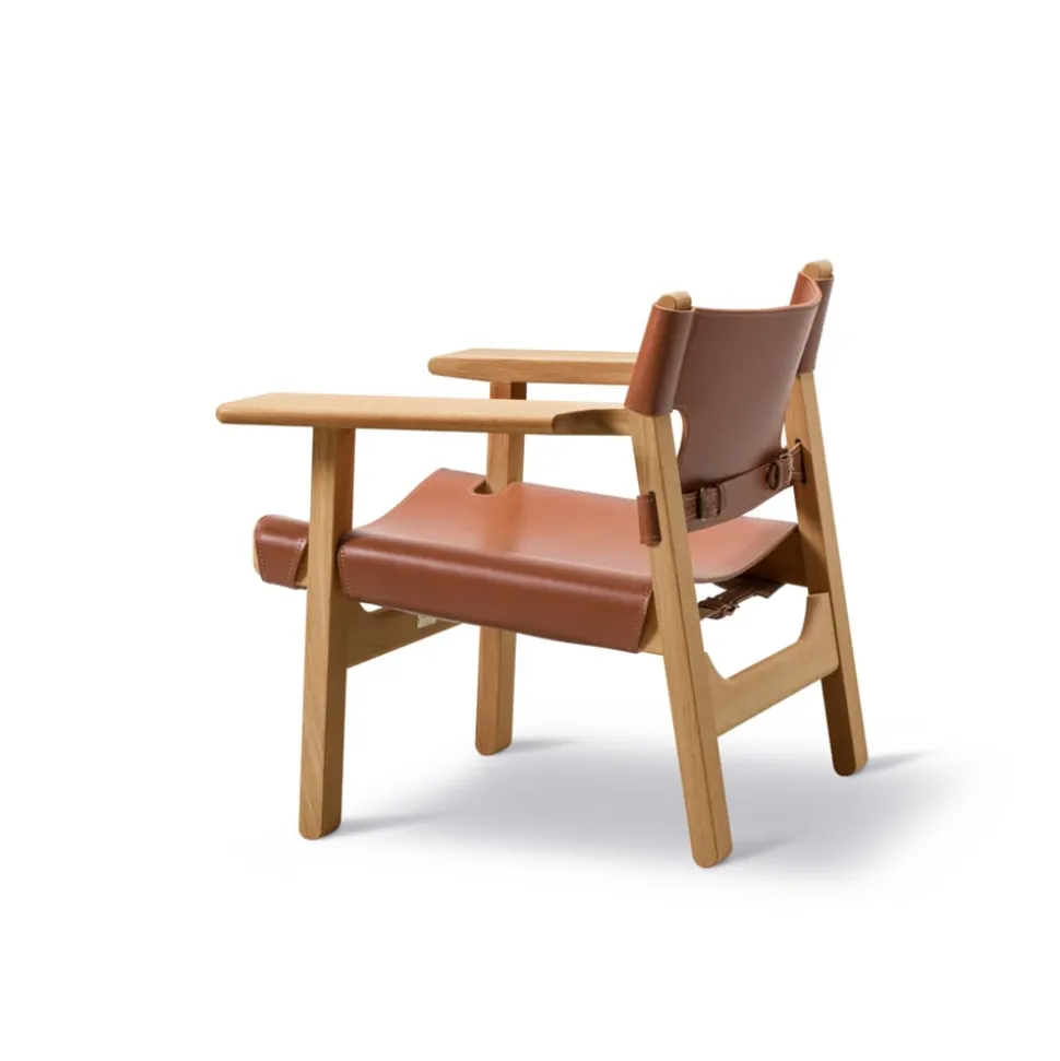 Der Spanish Chair ist aus den besten Materialien gefertigt, vom geviertelten Eichenholz über die Messingschnallen bis hin zum pflanzlich gegerbten Leder, das noch heute nach traditionellen Verfahren in Nordschweden gegerbt wird. Diese Konzentration auf die Qualität der Materialien trägt dazu bei, dass ein Möbelstück über Jahrzehnte hinweg geliebt werden kann und im Laufe der Jahre eine persönliche Patina erhält, die jedem Möbelstück Charakter und Persönlichkeit verleiht.