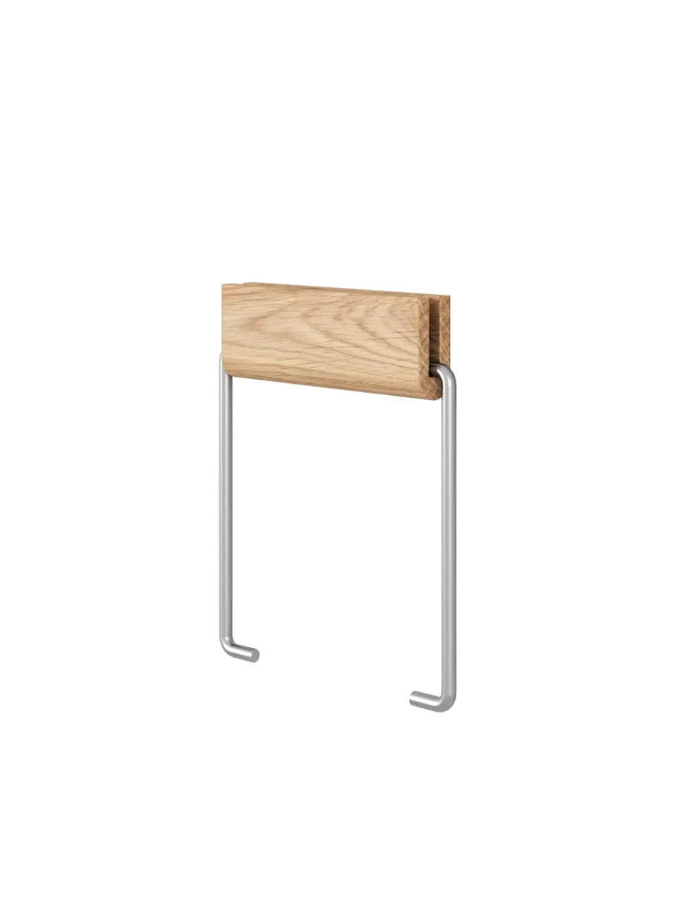Der feine Toilettenpapierhalter wird von Moebe hergestellt. Der Toilettenpapierhalter besteht aus Metall und Eiche, die mit einem Lack auf Wasserbasis behandelt ist. Der Lack auf Wasserbasis macht den Toilettenpapierhalter ideal für feuchte Umgebungen.