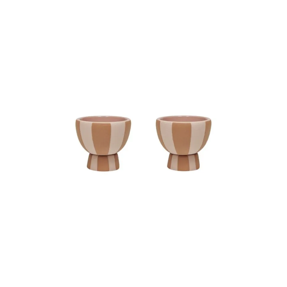 % Der Eierbecher Toppu von ist ein wunderschönes Zweier-Set, das aus 100 Steingut hergestellt wird. Jeder Eierbecher ist handgefertigt und handbemalt, was ihm einen einzigartigen Charakter und einen verspielten Ausdruck verleiht, der dem Frühstückstisch einen Hauch von Charme verleiht. Die klare und einfache Form verbindet Funktionalität mit Ästhetik und ist mit ihren stilvollen Streifen eine Augenweide.