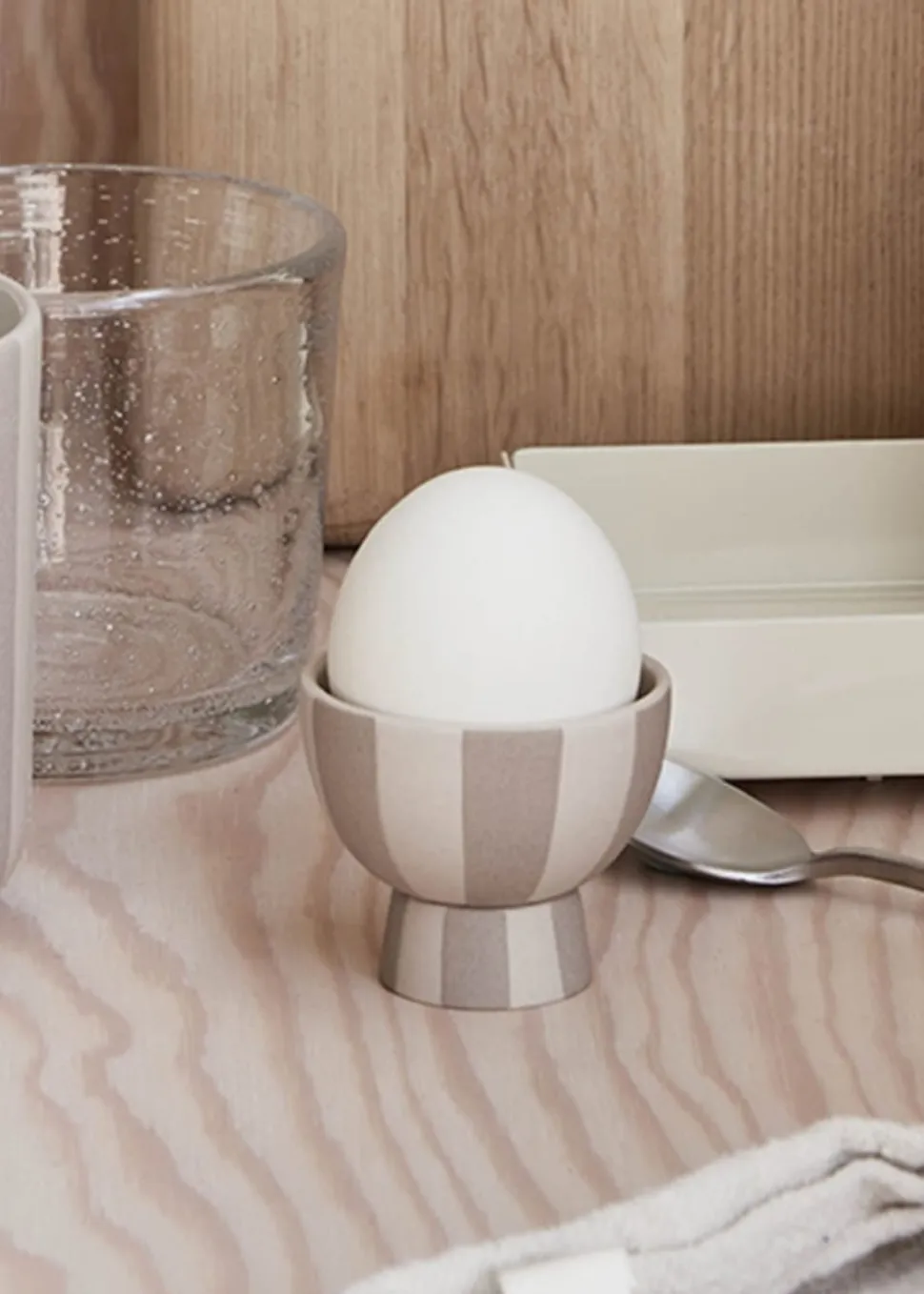 % Der Eierbecher Toppu von ist ein wunderschönes Zweier-Set, das aus 100 Steingut hergestellt wird. Jeder Eierbecher ist handgefertigt und handbemalt, was ihm einen einzigartigen Charakter und einen verspielten Ausdruck verleiht, der dem Frühstückstisch einen Hauch von Charme verleiht. Die klare und einfache Form verbindet Funktionalität mit Ästhetik und ist mit ihren stilvollen Streifen eine Augenweide.