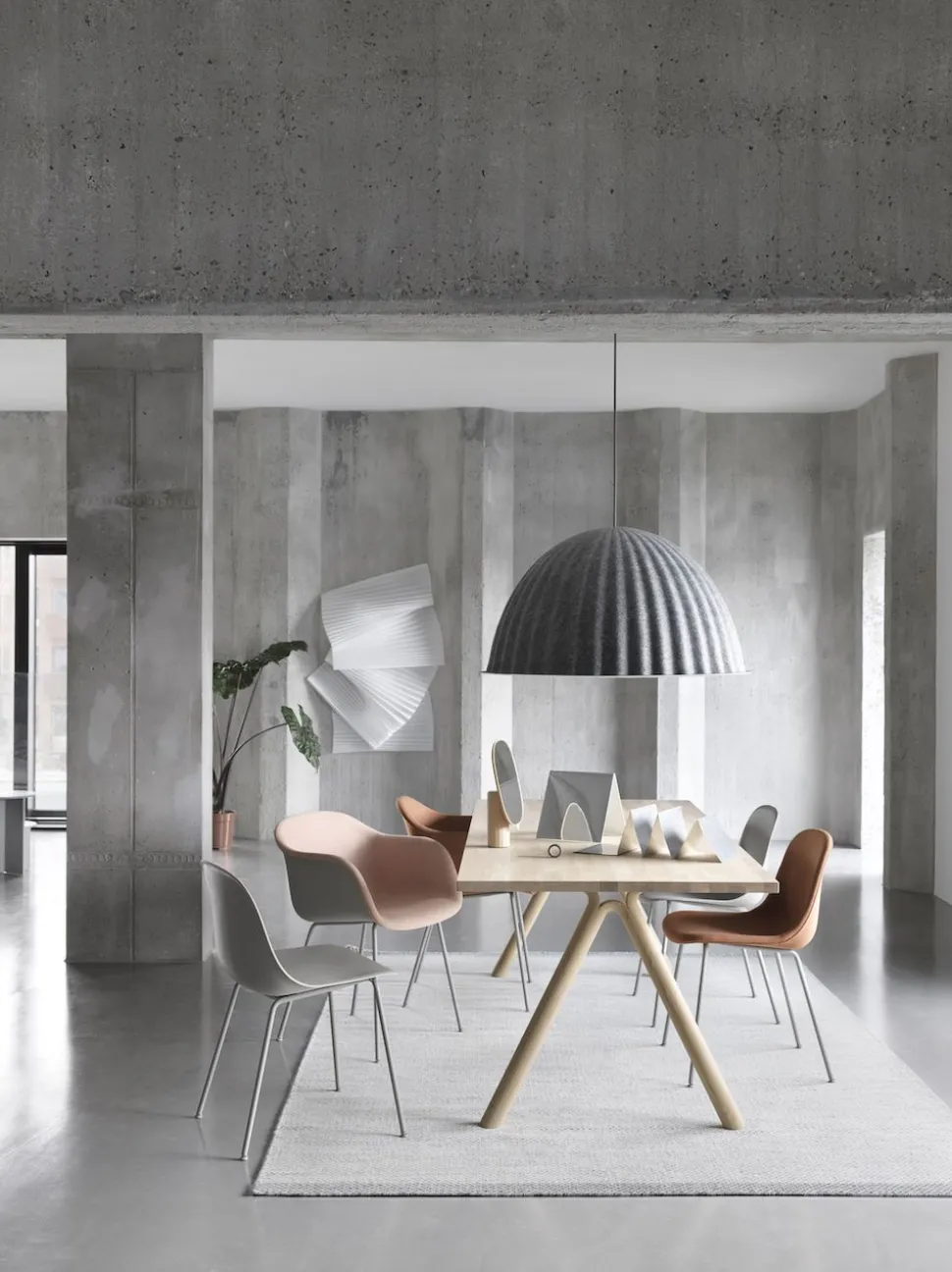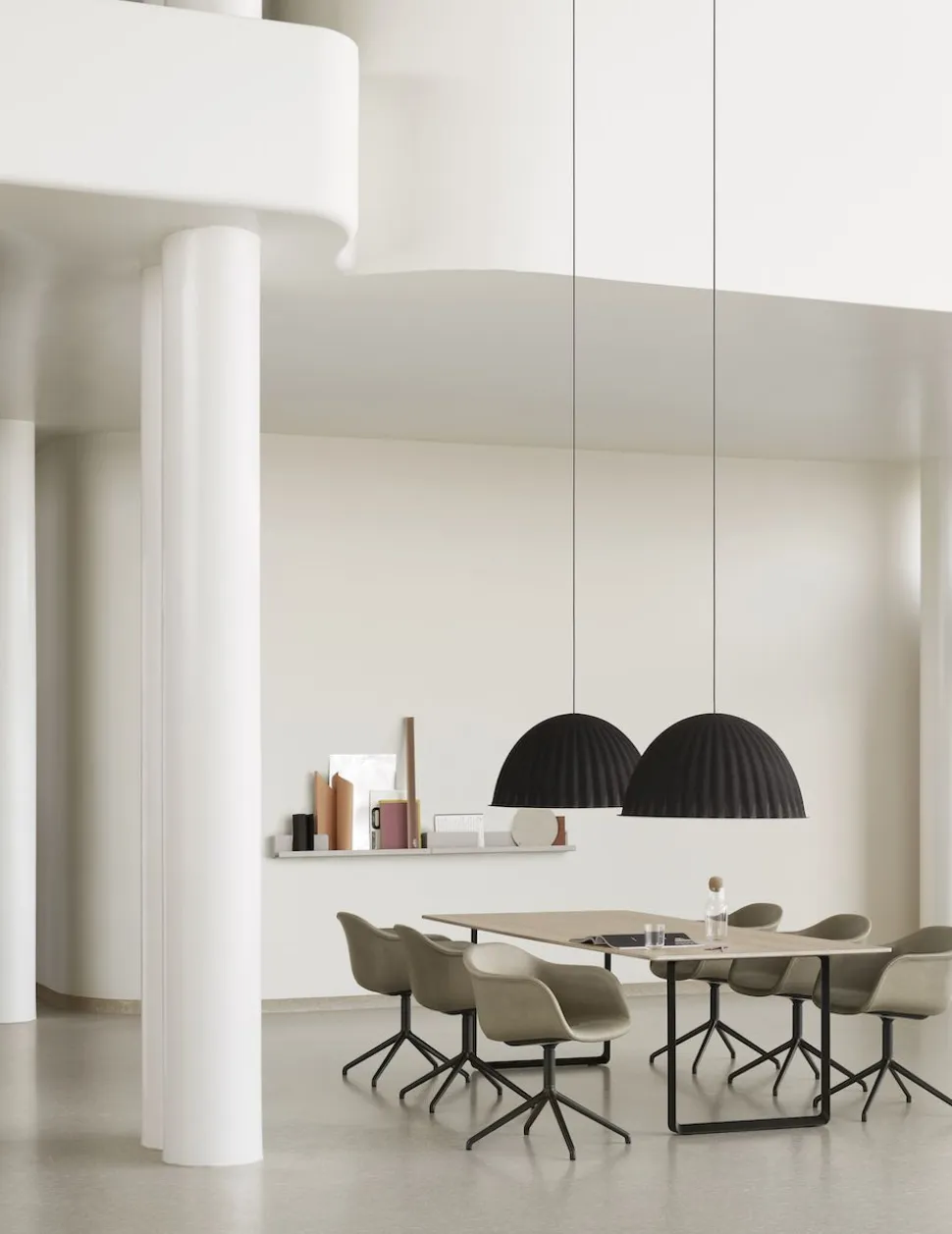 Die Under The Bell Pendelleuchte ist eine akustische Lösung und ein Blickfang in Ihrem Zuhause. Über einem Tisch oder in einem offenen Raum platziert, schafft die glockenförmige Leuchte eine eigene Sphäre, die die Menschen unter ihr sowohl physisch als auch abstrakt umhüllt und schützt. Durch ihr einzigartiges Design und die Wahl der Materialien verbessert die Lampe auch die Akustik in jedem Raum.