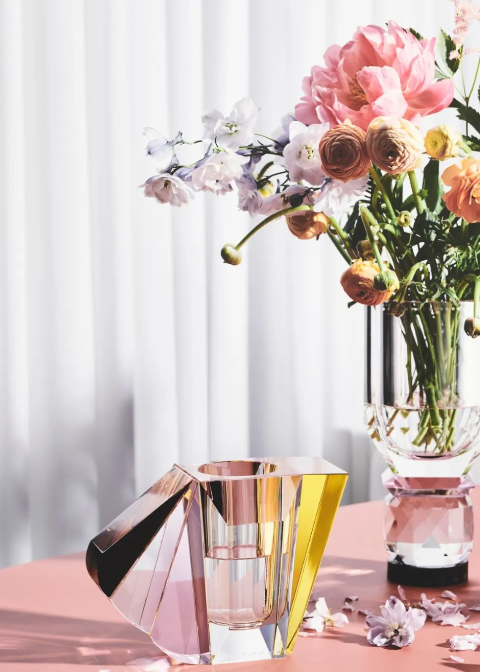 DieUtah Vase ist eine Hommage an den anhaltenden Einfluss des Art déco-Designs. Sie verbindet klare, geometrische Linien mit einer modernen Ausstrahlung zu einem zeitlosen Ausdruck von Raffinesse. Die Vase ist aus hochwertigem Kristallglas mit abgeschrägten Kanten gefertigt und hat einen atemberaubenden schillernden Effekt. Stellen Sie sie in die Sonne und beobachten Sie, wie das Sonnenlicht mit den Kristallen spielt und ein sanftes und bezauberndes Ambiente um sie herum schafft.