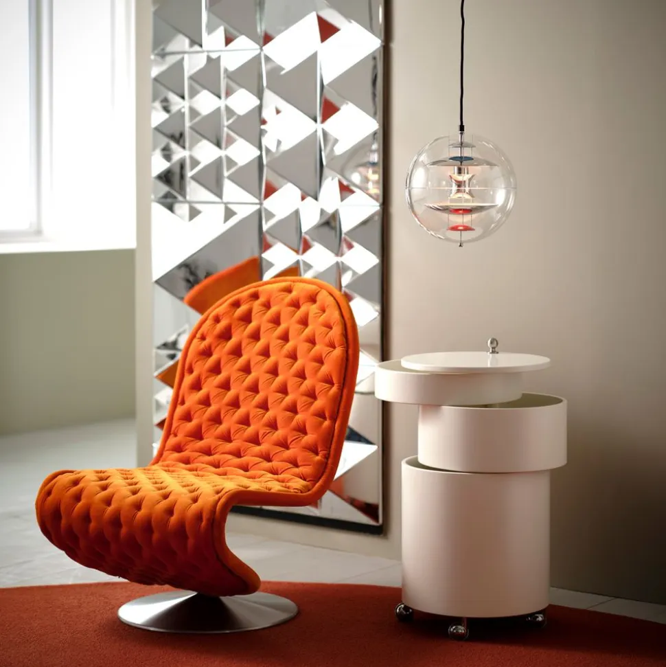 Die VP Globe mini behält Pantons ikonische Design-DNA bei und enthält geschmackvolle rote und blaue Farbtupfer, die ihrer futuristischen skulpturalen Form den perfekten Schliff verleihen. Diese Hängeleuchte zeugt von Pantons Ehrgeiz, ein leuchtendes Herzstück zu schaffen, das die Aufmerksamkeit auf sich zieht und jeden Raum vereinheitlicht, ob sie nun als Solitär oder in Form einer faszinierenden Gruppe hängt.