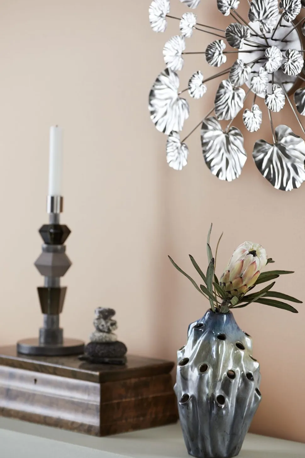 Diese schöne Wandblume, Wall Flower, verleiht Ihrem Dekor etwas Dekadentes. Nina Frederikke Thomasen Jensen hat sich von der Natur inspirieren lassen, Blätter, die im Herbst verblassen und schöne Blumenkronen, die blühen und sich in schöne Kunstwerke verwandeln.