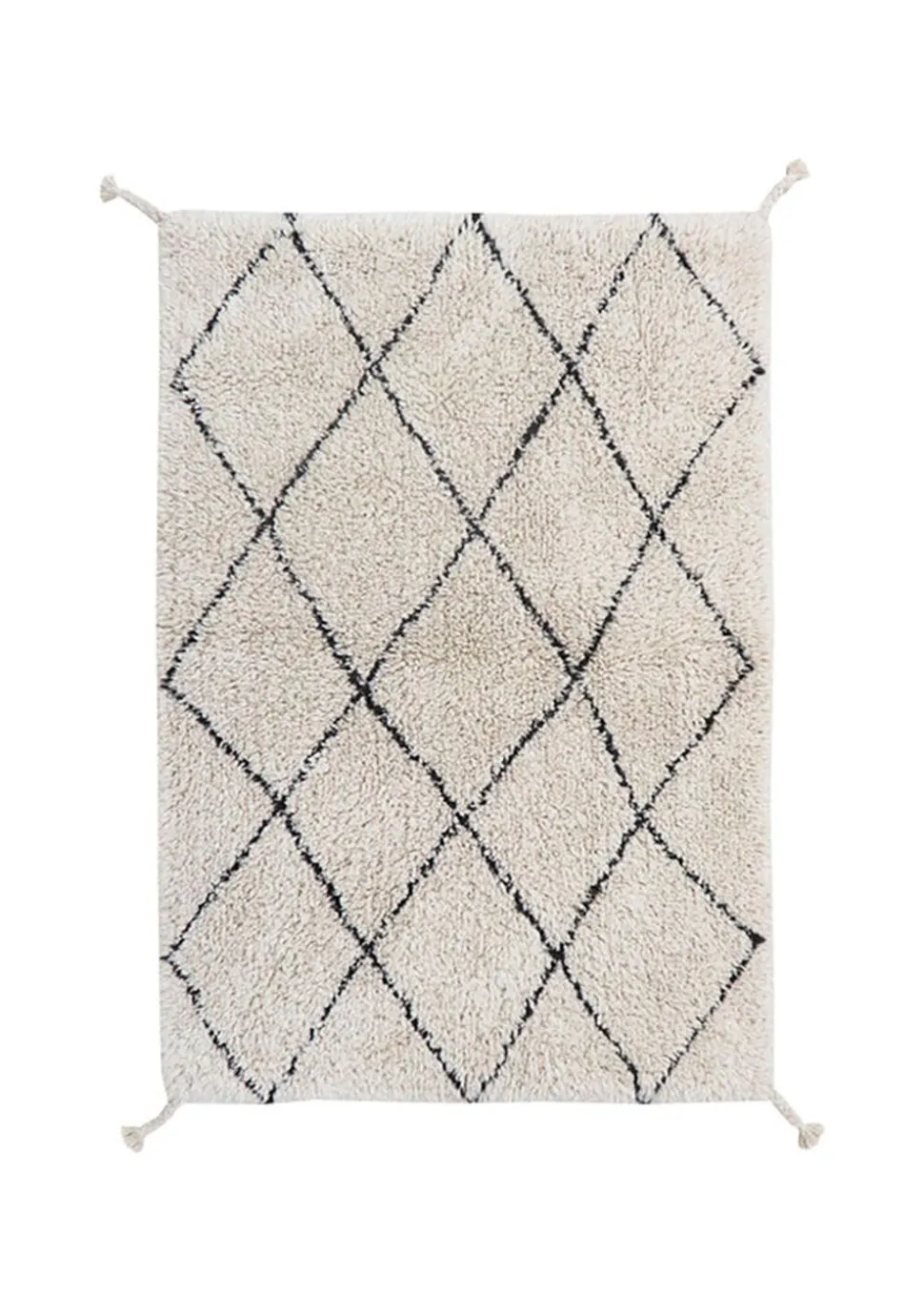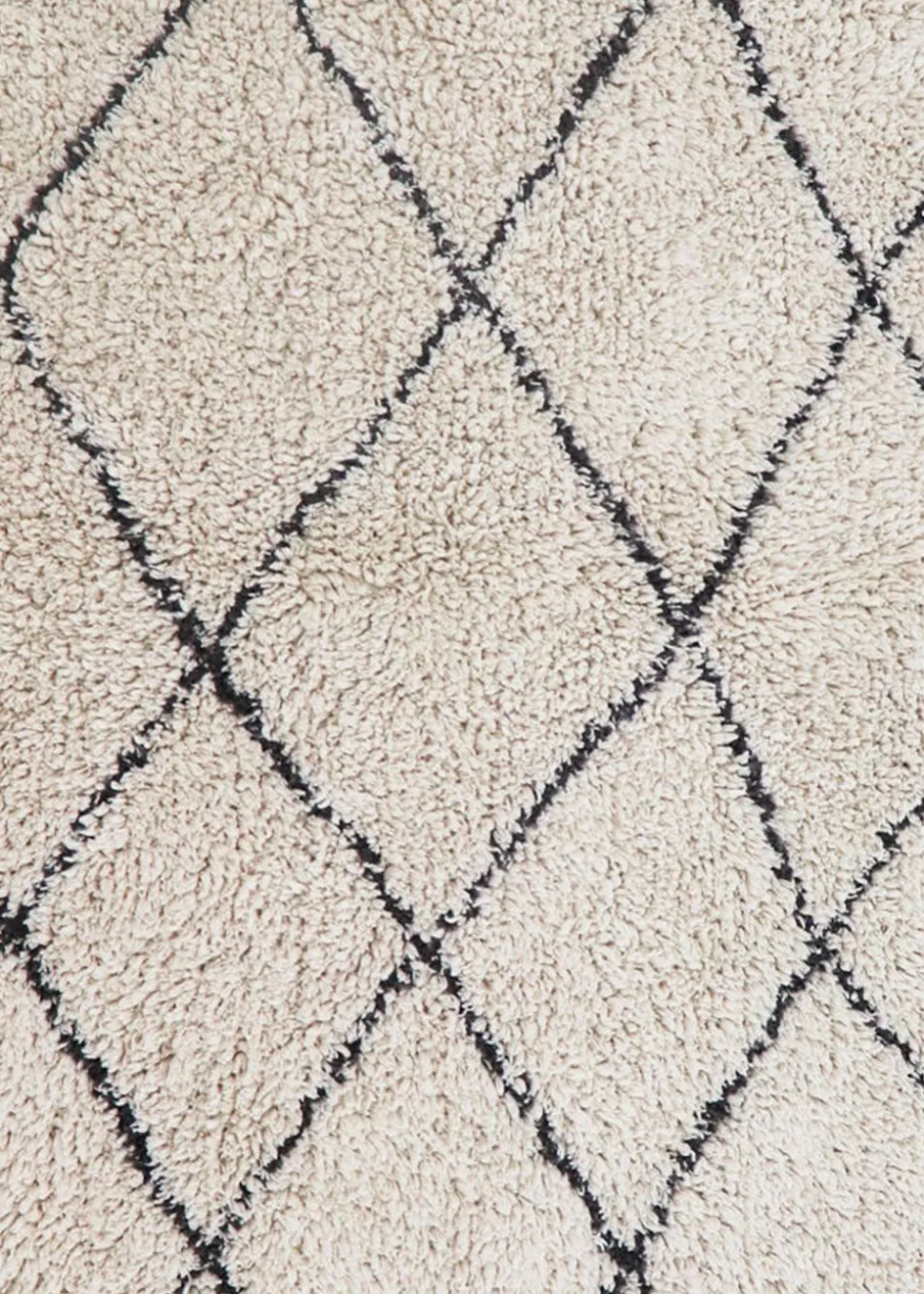 Der waschbare Teppich Mini Bereber von ist eine Mini-Version des Berener-Teppichs. Das Produkt ist Teil der Mini Ones Serie. Dieser Teppich ist praktisch und stilvoll zugleich. Er eignet sich perfekt für die Dekoration Ihres Zuhauses und ist dank seiner Waschfunktion leicht zu reinigen. Die natürliche Farbe des Teppichs hebt die vom Berber inspirierten gekreuzten Linien in Schwarz hervor.