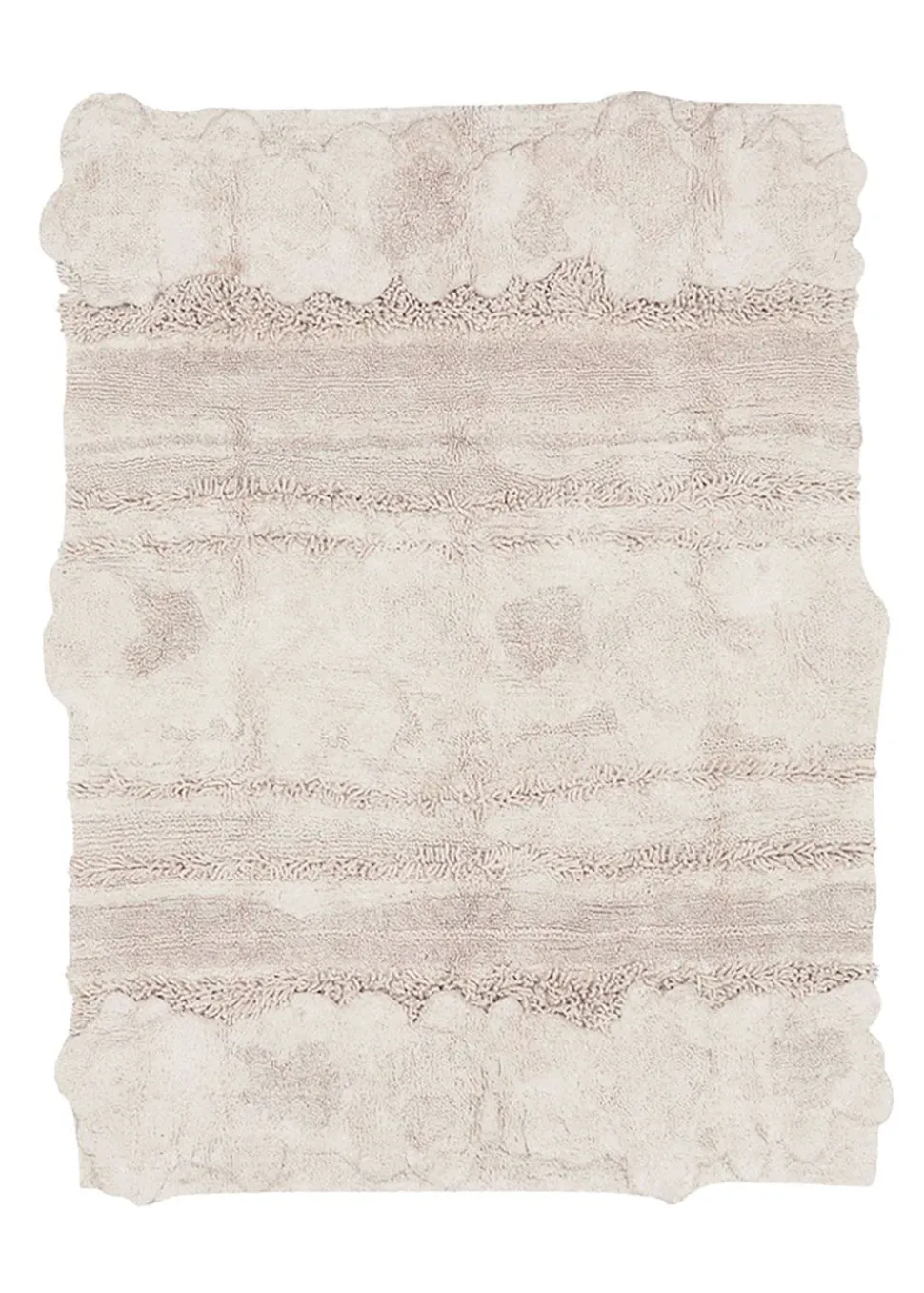 Der Teppich hat ein stilvolles Aussehen. Das unifarbene Design aus cremefarbener Baumwolle wird mit verschiedenen Nähtechniken kombiniert, wie z. B. Cut Bun, Loop und Chennille. Das alles verleiht dem Teppich ein wunderschönes Finish. Legen Sie den Teppich in das Zimmer Ihres Kindes und erleben Sie, wie er eine ruhige und fröhliche Atmosphäre schafft.