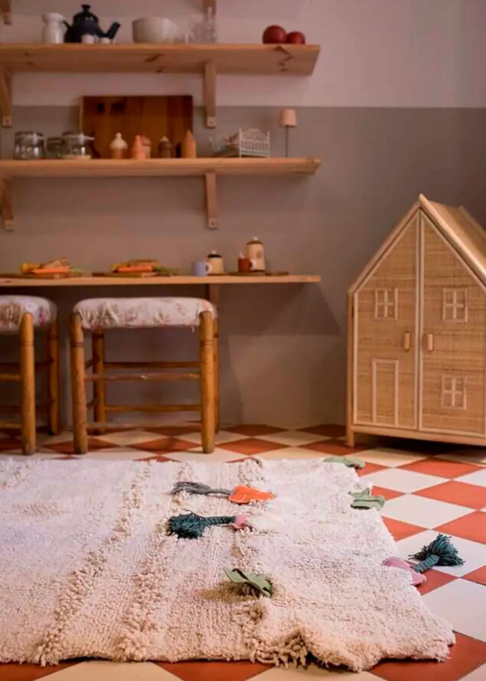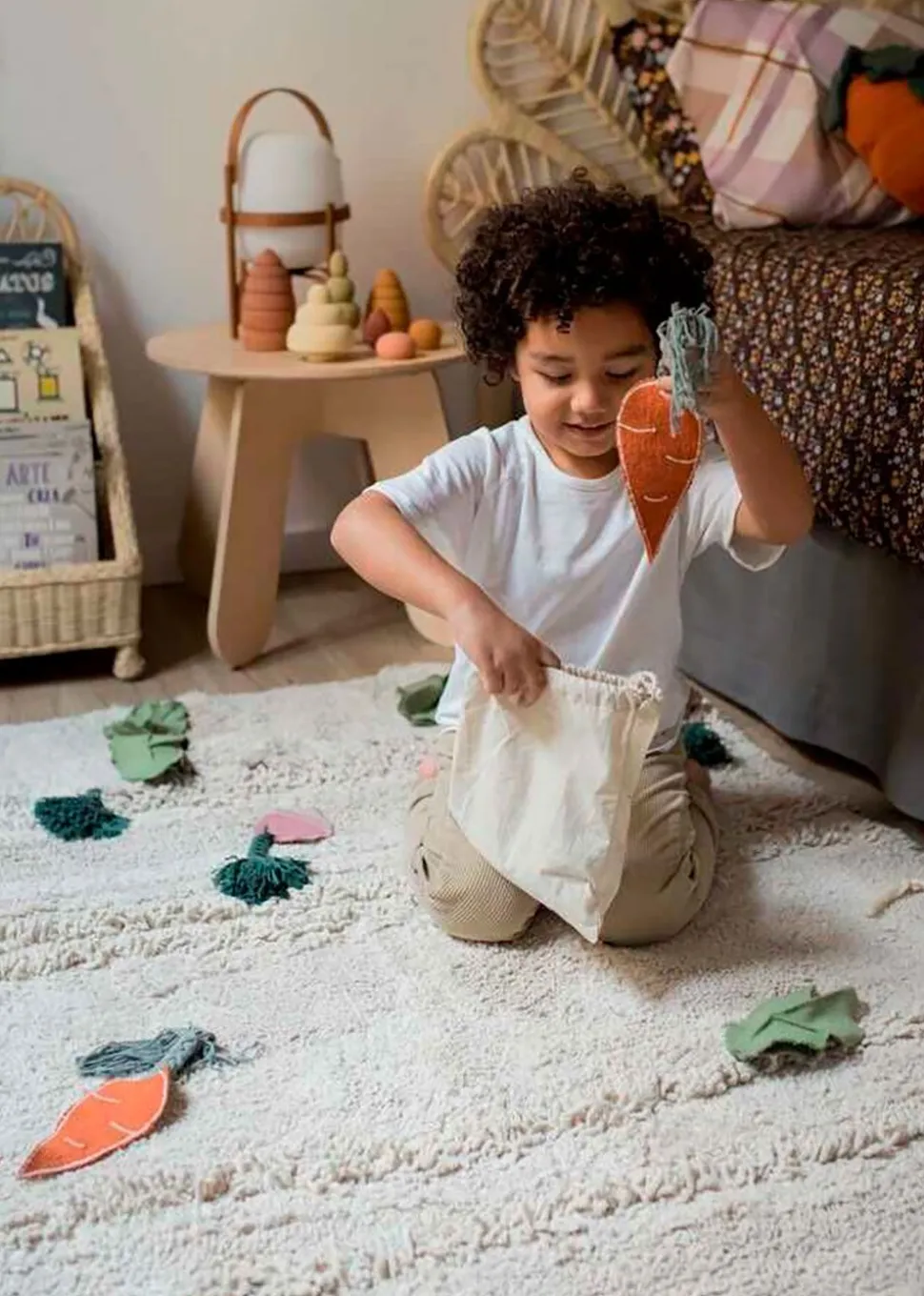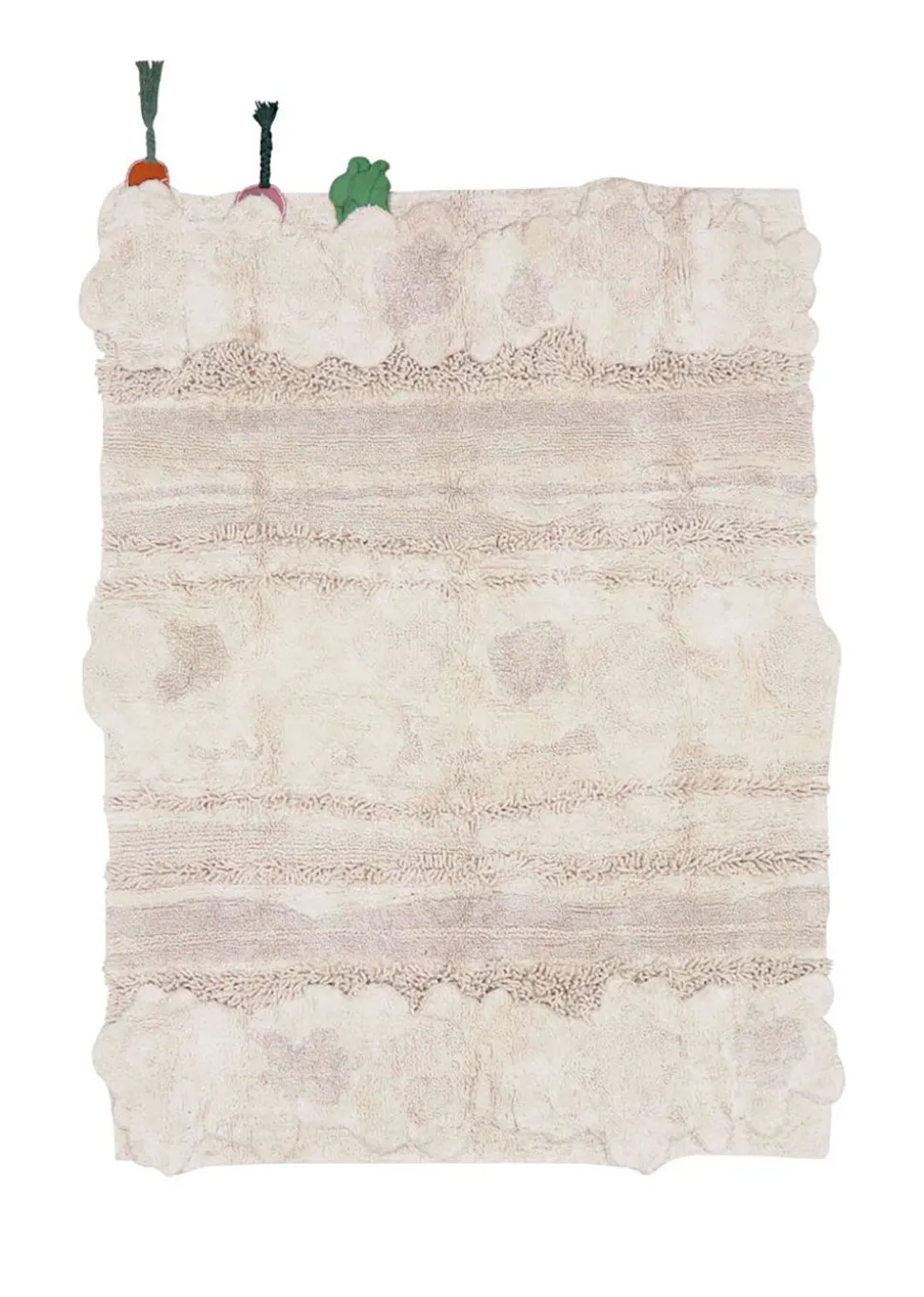 Der waschbare Teppich Veggie Garden von ermöglicht es dem Kind, im Garten zu spielen, ohne sich schmutzig zu machen. Als Teil der Oli&Carol-Reihe ist der Teppich multifunktional, da er sowohl als normaler weicher Teppich als auch als lustige Spielmatte funktioniert.