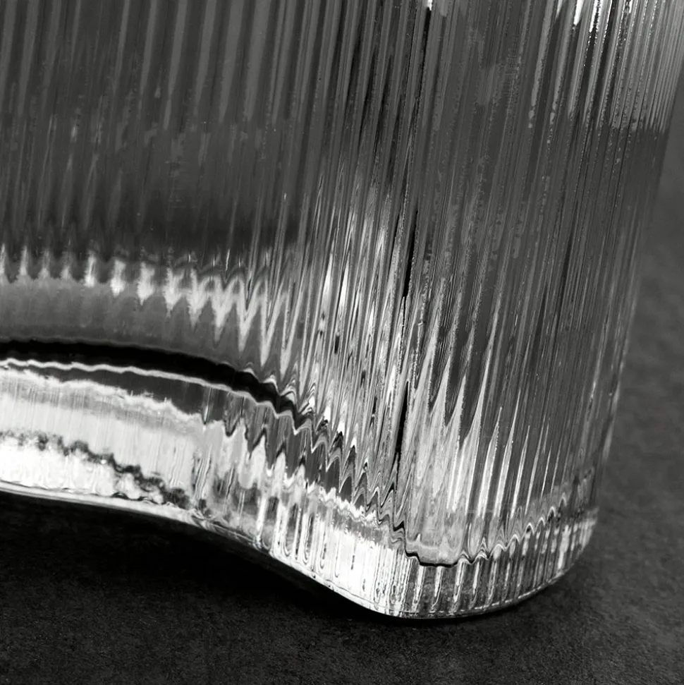 Die Wasserkaraffe Ripe wird von hergestellt. Die Karaffe wird aus geriffeltem Glas hergestellt. Ripe Wasserkaraffe hat ein schönes Design, einzigartige Form und eine gerippte Oberfläche. Die Wasserkaraffe Ripe kann auch als Vase mit feinen Blumen darin verwendet werden.