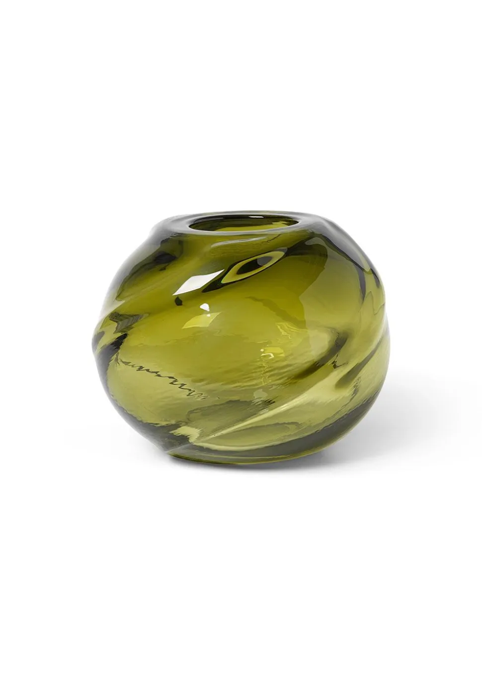 Water Swirl Vase von aus mundgeblasenem Glas in vier organischen Farben. Die beeindruckende Größe und die unebene Oberfläche der Vase vermitteln das Gefühl von flüssigem Wasser, das eine schöne Reflexion erzeugt, wenn das Licht durch sie hindurchscheint. Kombinieren Sie die Vase mit kleinen Blumen oder lassen Sie das dekorative Design der Vase für sich selbst sprechen.