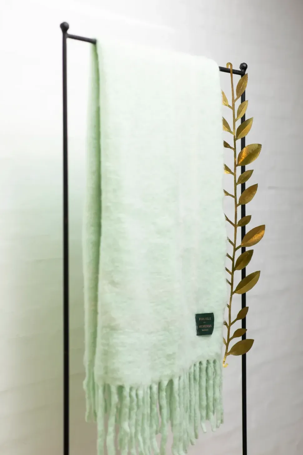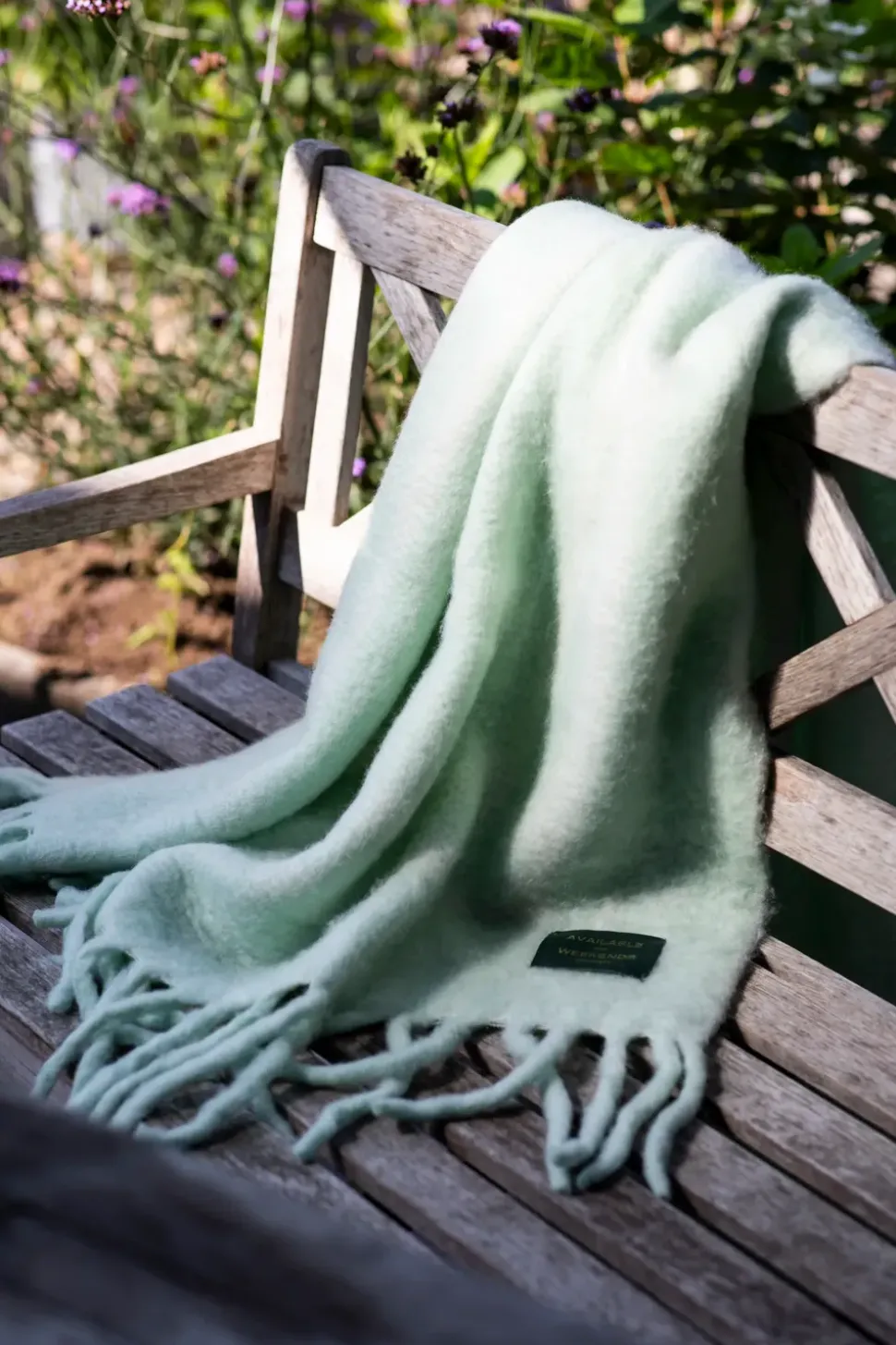 Jedes Weekend Plaid hat ein hochwertiges Lederetikett mit geschmackvoller Prägung in komplementären Farbtönen, das dieser ohnehin schon exquisiten Kreation einen Hauch von Finesse verleiht.