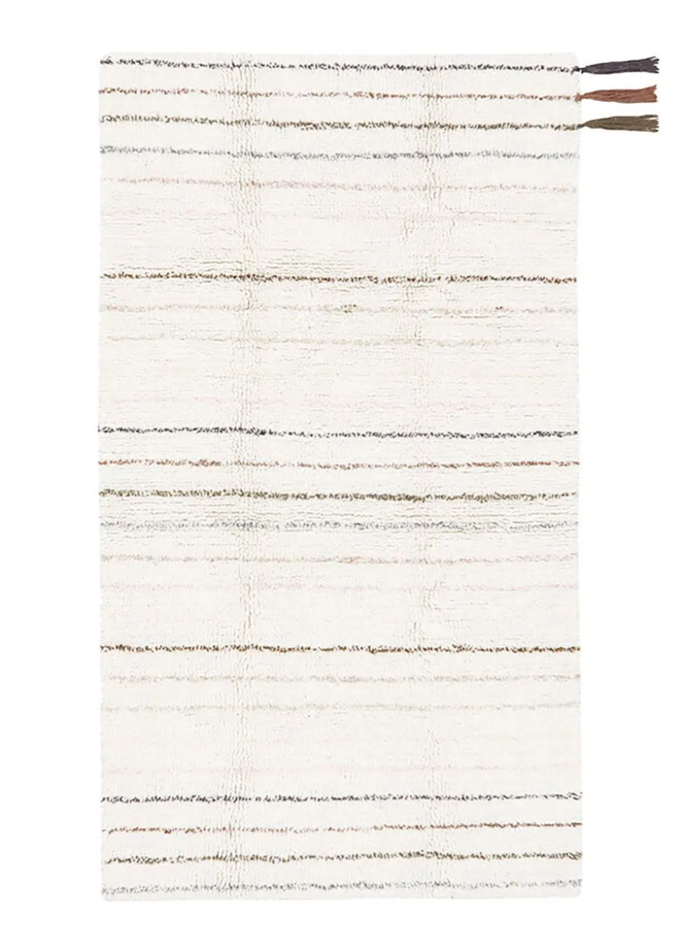 - Pflegehinweise: Der Teppich ist bei 30 Grad in der Maschine waschbar. Da der Teppich aus Naturfasern besteht, kann es vor allem nach den ersten paar Wäschen zu einem leichten Ausfransen kommen. Dieser Vorgang lässt mit der Zeit nach, wenn der Teppich mit dem Staubsauger abgesaugt wird (immer auf niedriger bis mittlerer Saugstufe).
